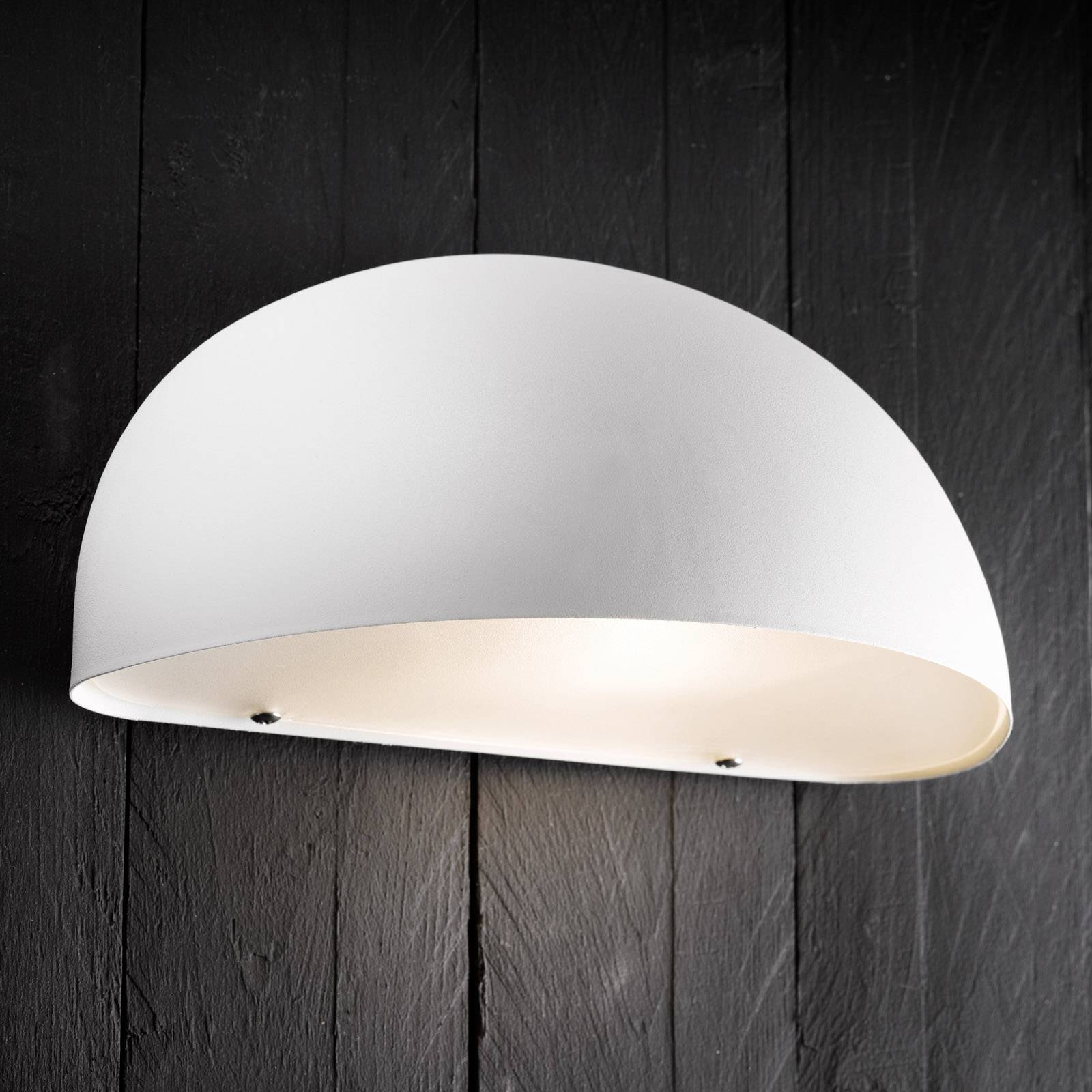 Halfrond buitenwandlamp Bergen van metaal De buitenwandlamp Bergen bespaart energie, is dankzij het gebruikte materiaal zeer duurzaam en past met zijn aantrekkelijke uiterlijk bij vele architecturale stijlen.